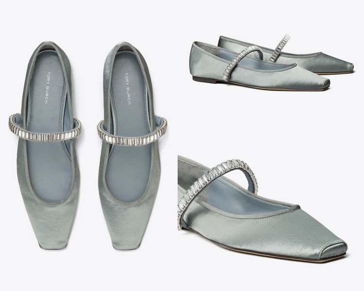 璀璨的鑽飾永遠都是目光焦點,當它擺在鞋履上時,更令人著迷不已!Tory Burch 這雙綴閃石平底芭蕾舞娃娃鞋,擁有銀灰色的緞面鞋身、精緻的羅緞飾邊,最重要的是腳背位置的那一抹「水晶彎月」設計,完全將眼球給牢牢攫住,穿上腳輕輕鬆鬆便能展現優雅大方的高質感!(商品售價 NT$ 15,900元)