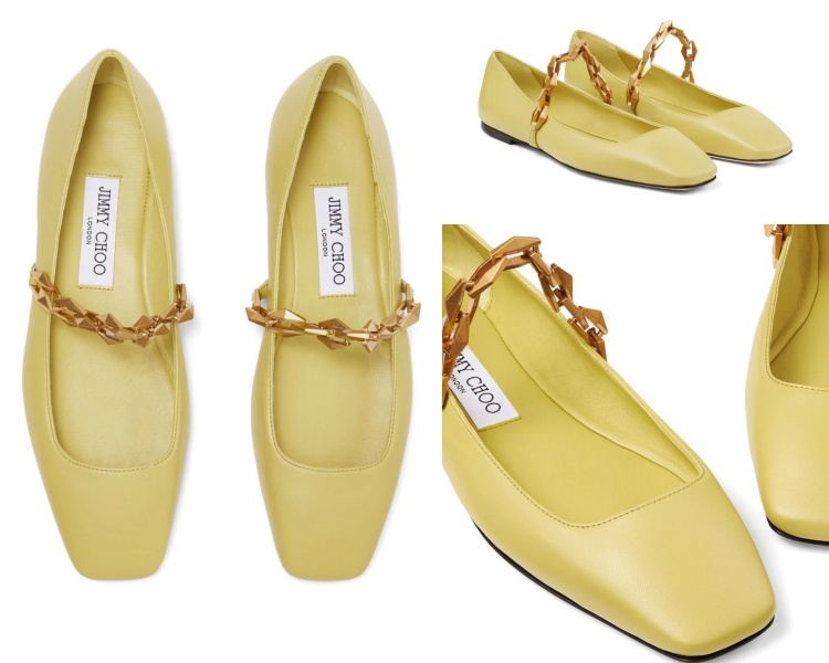 春夏的鞋櫃還缺少一雙黃色系鞋履嗎?Jimmy Choo 替我們想到了!這雙名為 Diamond Tilda 的芭蕾舞娃娃鞋,以柔軟溫潤的 Nappa 小牛皮製成,擁有令人驚豔的芥末黃色澤,不僅優雅耐看又十足百搭。方形的鞋頭與鞋身上的金屬鏈環細節,將品牌自豪的鞋履設計哲學表露無遺。(商品售價 NT$ 27,200元)