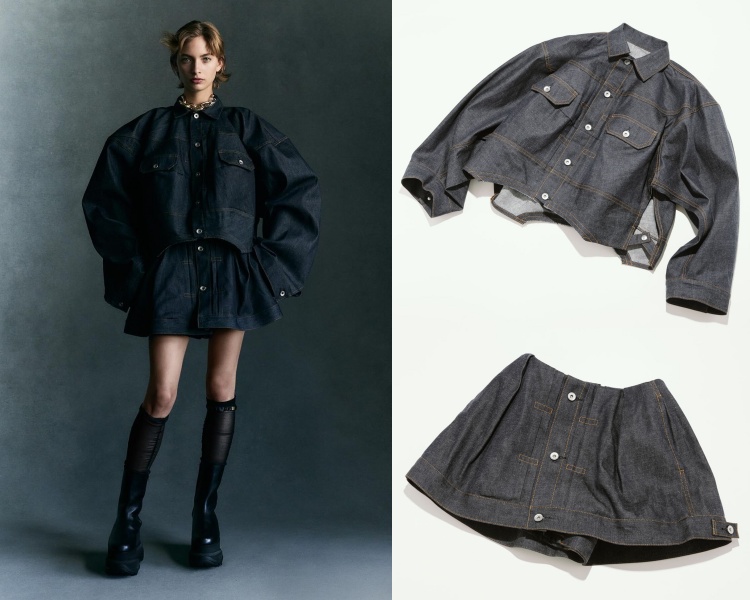 經典版型的丹寧服飾對你而言太普遍了嗎?那麼日本時裝品牌 Sacai 所推出的這套牛仔裝束,你可就不能錯過!Oversize 造型、半圓弧廓形的棕色明線牛仔夾克,在細節上無一不用心,外套側邊處的開衩設計及下擺弧度剪裁,讓整件上衣呈現猶如「熱氣球」般的挺括樣態。下身的設計亦不容忽視,乍看像是「牛仔外套下擺」的這件褲裙,以A字剪裁呈現出立體流暢的線條,正面縫製三顆鈕扣、裙擺處亦飾有牛仔扣飾,與同系列牛仔夾克一起搭配,創造出具有「洋裝」意象的丹寧風範。(商品售價:外套 NT$ 25,600元/褲裙 NT$ 20,000元)