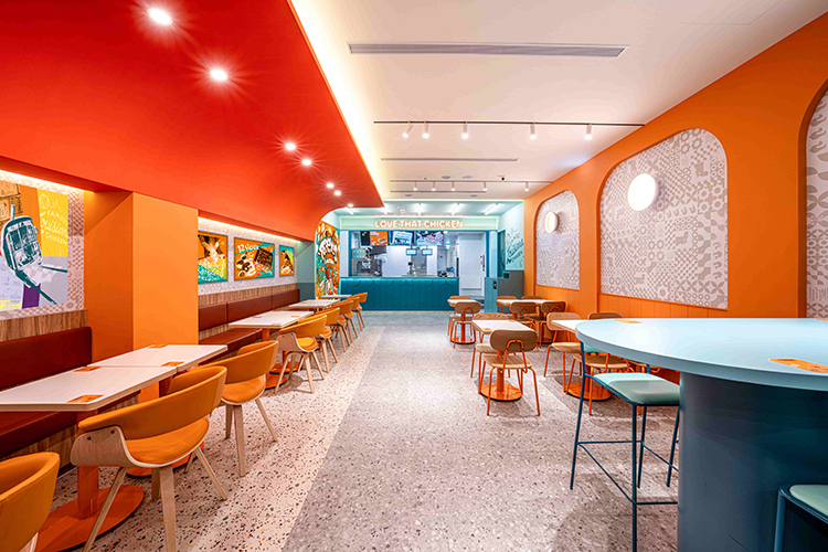 美國連鎖炸雞品牌「Popeyes」登入台灣!首店將進駐台北車站地點就選在許昌街上。全台首店以繽紛明亮的元素設計,店內大膽使用橘、藍色調,完美還原故鄉路易斯安那的氣氛。除高識別度的色彩搭配,Popeyes也將路易斯安那州常見的弧形欄杆,化為天花板設計,結合街景剪影和爵士風元素,承襲自發源地鮮明、愉悅、多彩、自信的品牌特色。