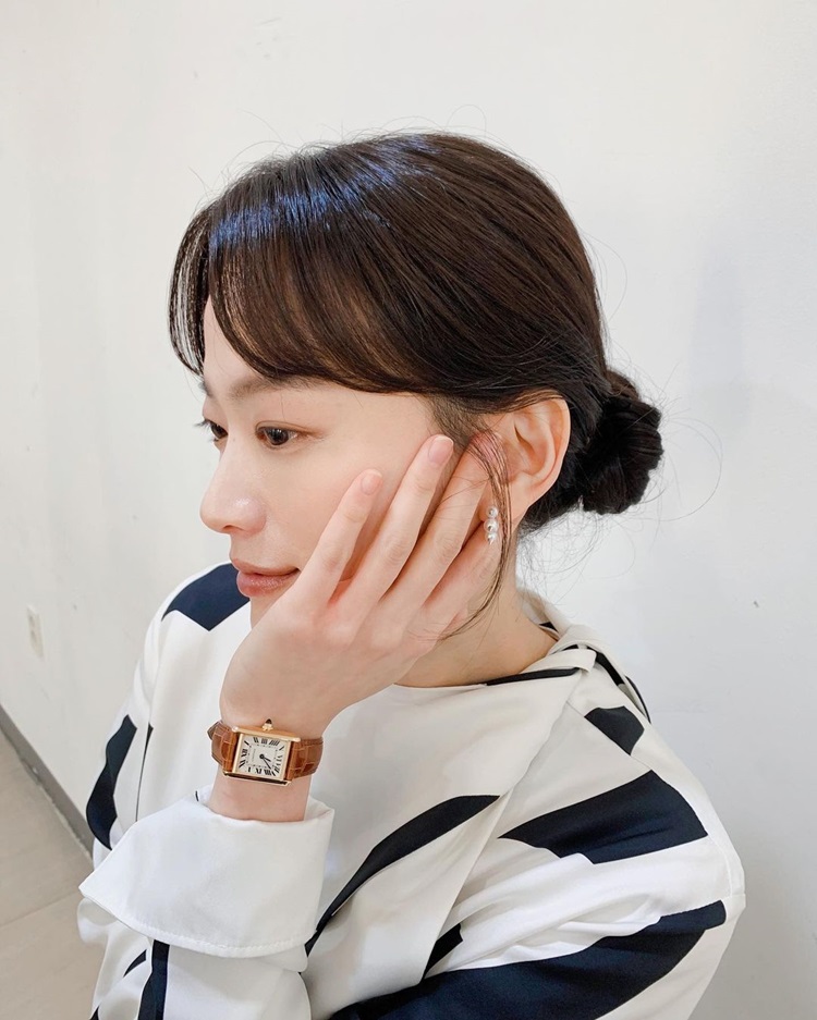 齊瀏海小臉髮型推薦6:八字低髮髻