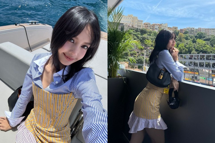 BLACKPINK Lisa自從單飛後在歐美娛樂圈相當活躍,造型部分也更勇於嘗試不同搭配,像是5月初出席F1邁阿密大獎賽時,最新曬出的度假照就難得穿上「條紋風格」!身上兩件單品都出自於義大利高級街頭品牌DSQUARED2,Lisa大膽在平口連身裙裡內搭一件白領襯衫,藍白和 亮黃色的對比撞色更疊穿出另類層次,光從上身襯衫、洋裝再到下身的荷葉裙襬就有三種不同的條紋樣式。為了避免視覺焦點過度雜亂厚重,Lisa特別把胸前扣子打開營造V領效果,和微微中分的瀏海露出部分肌膚,亮眼十足也洋溢活潑氣息。