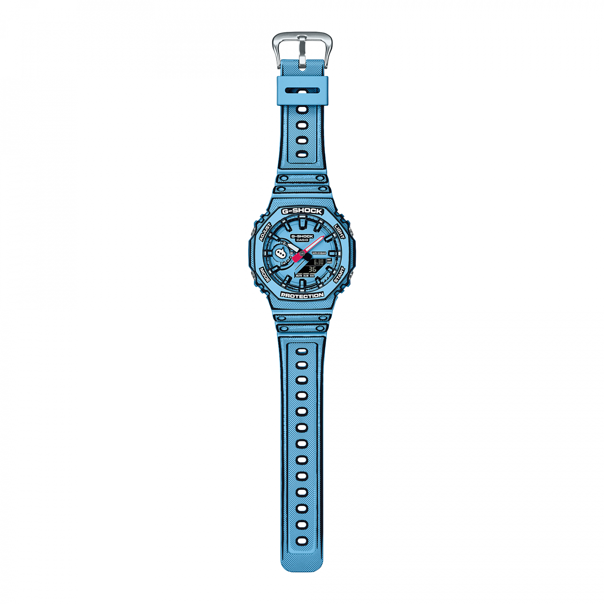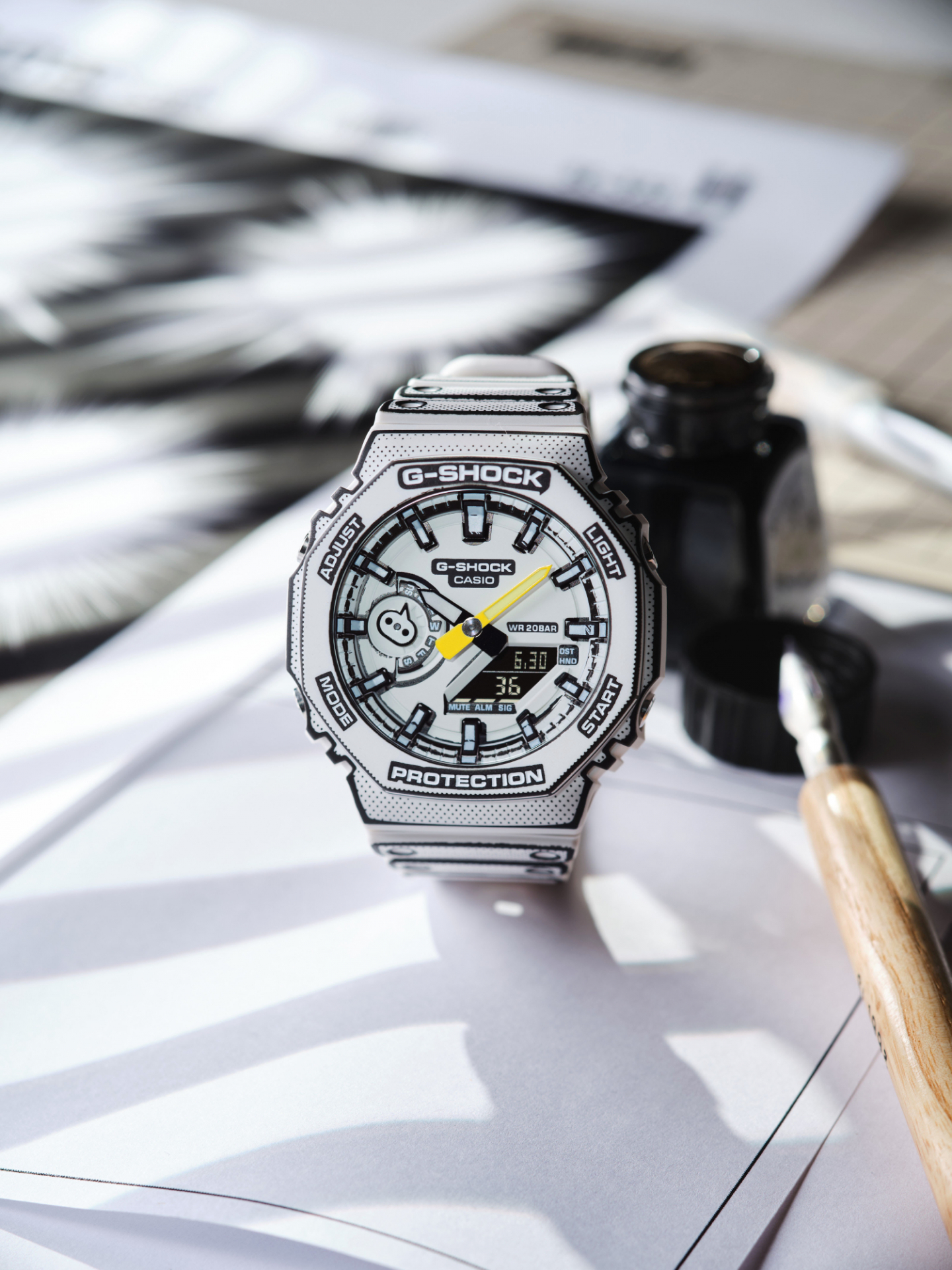 以經典八角錶殼的2100為基礎型號,採用碳纖維樹脂錶殼搭配生質樹脂錶帶。錶款的整體外觀應用線條與陰影創造2D視覺效果,並採用漫畫家常用的網點技術,營造出漫畫特有的情境感。