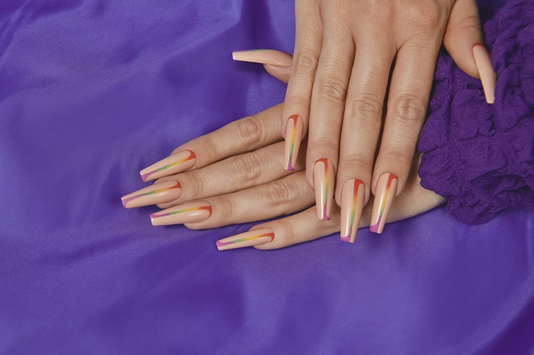 夏季亮彩美甲最新趨勢2:彩虹線條