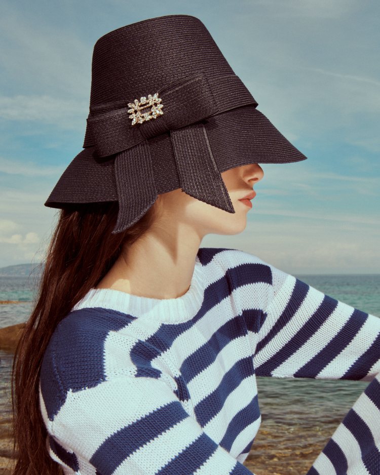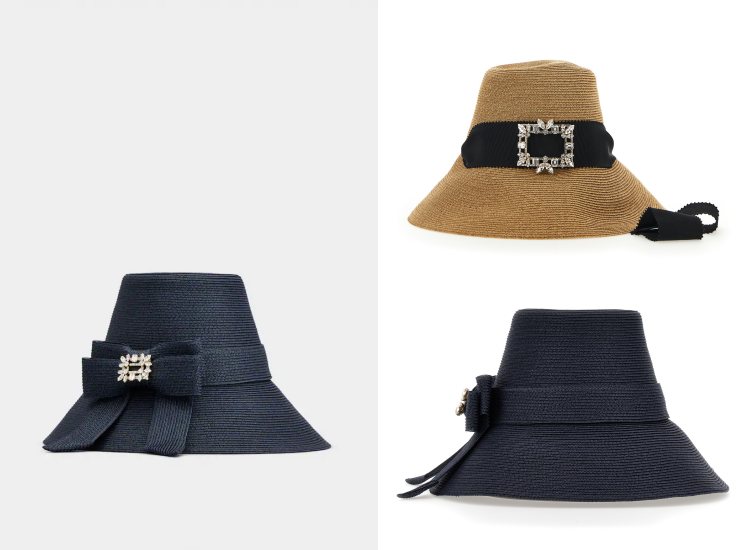 除了鞋履、包袋很吸睛,Roger Vivier 在本次也沒忘了夏日度假必備的帽子!在本次一共推出了兩種帽款,一款為拉菲草原色編織的漁夫帽,花鑽方釦與黑色織帶的點綴,加上帶點鐘型線條的包覆廓形,讓其帽款即便是度假風格的設計仍擁有優雅的氣質,另一款則是將拉菲草以海軍藍的色彩成線,細節上以草編蝴蝶結及花鑽方釦最為亮點,讓其貌款帶去出入正式場合也非常吸睛。(商品售價:Broche拉菲草鑽扣草編帽NTD 38,000;Broche海軍藍拉菲草鑽扣草編帽NTD 38,000)