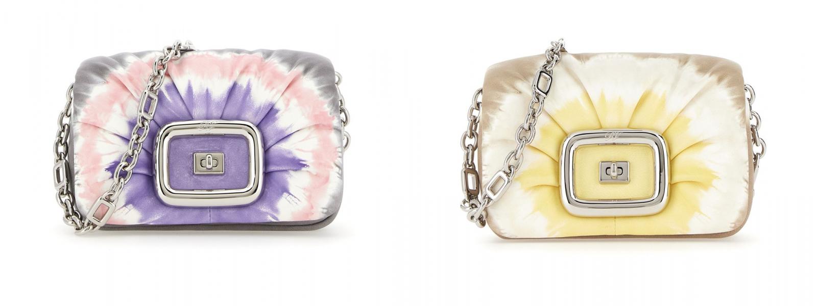 而在百家爭鳴的包袋市場中,Roger Vivier 在近年以一款澎潤的泡芙包「Viv' Choc」抓住大眾的目光,延續其包款細膩如枕頭般的包身,柔軟的皮質以特殊的抓皺搭配方釦呈現,而在色彩上延續夏日的意向,設計師運用紮染的方式呈現出兩款配色,從丁香紫搭配粉色的渲染,又或是奶油黃與摩卡色的搭配,都完美展現出夏日意象。(商品售價:NTD128,000)