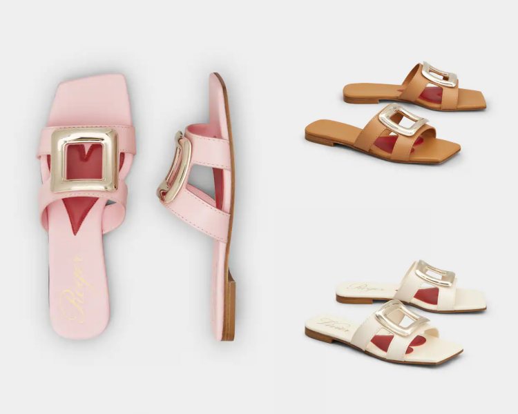 方釦鞋無疑是 Roger Vivier 最具代表性的單品,在這次的盛夏系列中,品牌延續其經典符碼,設計出一雙名為「Viv' by the Sea」的涼鞋,方頭的設計,讓此雙鞋款帶有一絲都會氣息,鞋面上的金屬方頭順應人體工學,以弧形的方式呈現,而鞋底的緩衝軟墊,則以可愛、吸睛的心型呈現,展示出 Roger Vivier 的浪漫,而本次的設計上一共擁有白米色、粉色及棕色三款配色,能滿足女孩不同的搭配風格。(商品售價:NTD34,200)