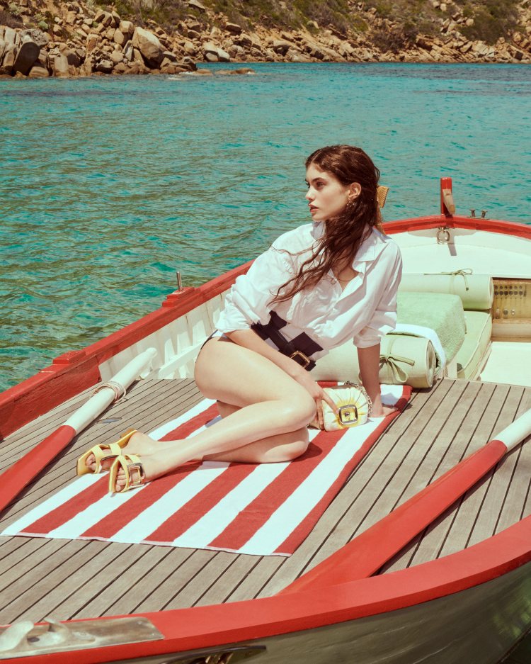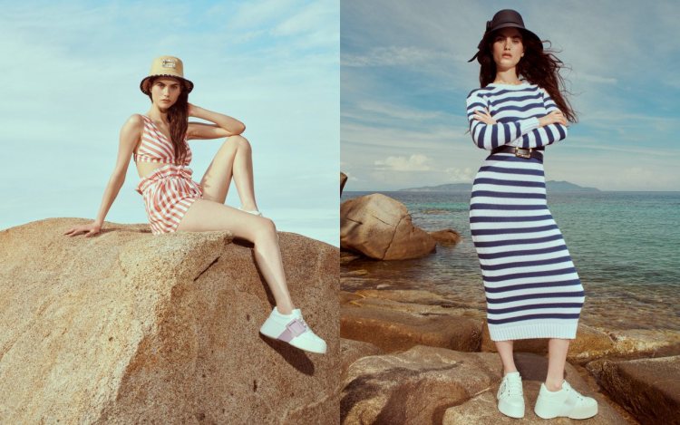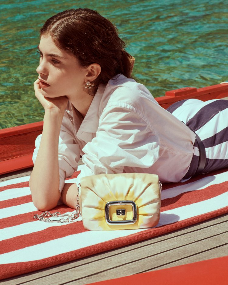 品牌創意總監 Gherardo Felloni 以靜謐自在的生活之樂 「 joie de vivre」這句話為靈感啟發,為 Roger Vivier 設計出一系列適合度假的單品,從本次於蔚藍海岸上所打造的形象照中可以感受到,品牌以輕鬆、自在且放鬆的氛圍,呈現本季的形象照,鮮豔的條紋服裝,以及鬆身的上衣,都將濃厚的度假氣息呈現其中。