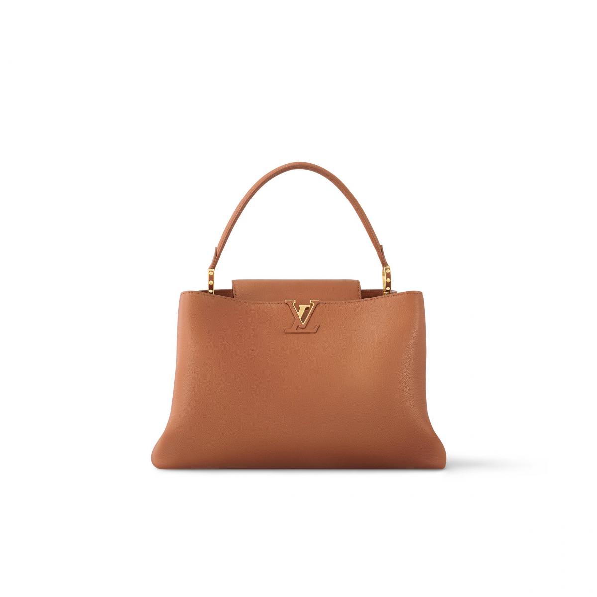 今年春夏時尚圈吹起一股「大包」風潮,除了大容量的實用需求再度被強調,在講究「輕盈感」的夏日造型裡,有時候具有份量感的大包,反而能平衡整體比例更為造型加分!像是LV這款Capucines GM Souple Millesime,就以38 x 23 x 16釐米的特大尺寸,重新演繹經典Capucines包款,質感精緻的天然小牛皮材質,換上焦糖棕色調更顯優雅大器,而一眼可辨的皮革拼金屬LV標誌則彰顯低調奢華,亦能以單柄手把或是裝上肩帶隨性切換背法,無論是上班還是假日攜帶都非常合適!
