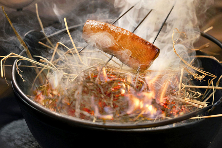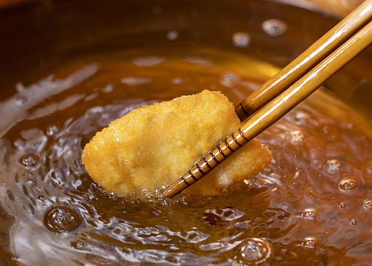 套餐菜色有別於其他分店更多元豐富,其中像是「鰹魚半敲燒」即為高知縣傳統料理,正鰹背肉先定鹽讓多餘水分釋出,再以稻草炙燒至表皮微焦,切片搭配水果醋和爽脆洋蔥絲品嚐。「白油旗魚串」和「香菇蝦茸丸」則是讓人難忘的炸物系列,富含油脂的白油旗魚切片依序沾裹麵粉、蛋液和細麵包粉酥炸,肉質Q實細膩多汁酥香。咬下塞入葡萄蝦、小甜蝦和荸薺內餡酥炸的香菇丸時飽滿鮮味,以上新品皆為華山店限定。