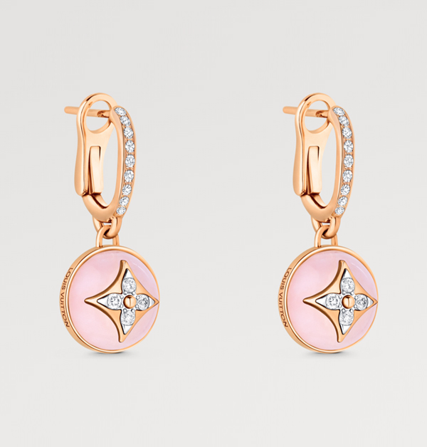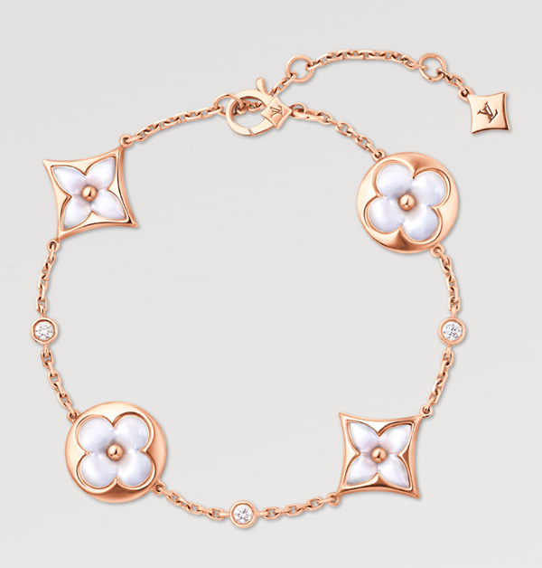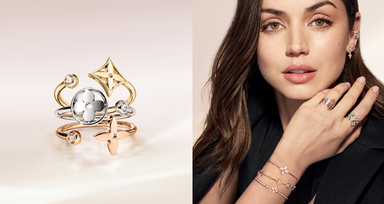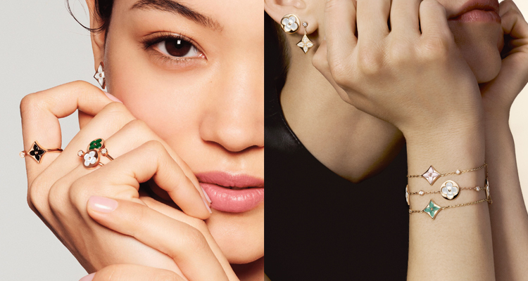 「Blossom」珠寶系列,將設計的焦點放在LV最一眼識別的傳奇Monogram圖騰。另延伸而出的支線系列「Idylle Blossom」,也再度以此為主題,再推出較為精緻、小巧的花瓣樣式珠寶「Idylle Blossom」,以玫瑰金和白K金這兩主要貴重金屬材質,勾勒出此系列的珠寶線條,再鑲嵌鑽石來點綴。無論是圈式耳環、手鍊或戒指…均用簡約、鏤空的結構來呈現核心精神的LV Monogram花紋,時髦不過時的經典設計,著實讓人耳目一新。