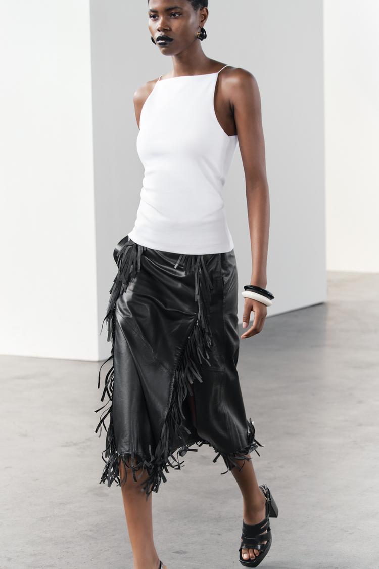 Zara 夏季「白色背心」推薦7:繞頸吊帶羅紋上衣