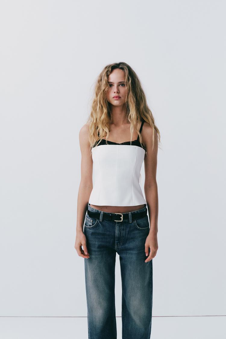 Zara 夏季「白色背心」推薦6:拼接蕾絲馬甲上衣