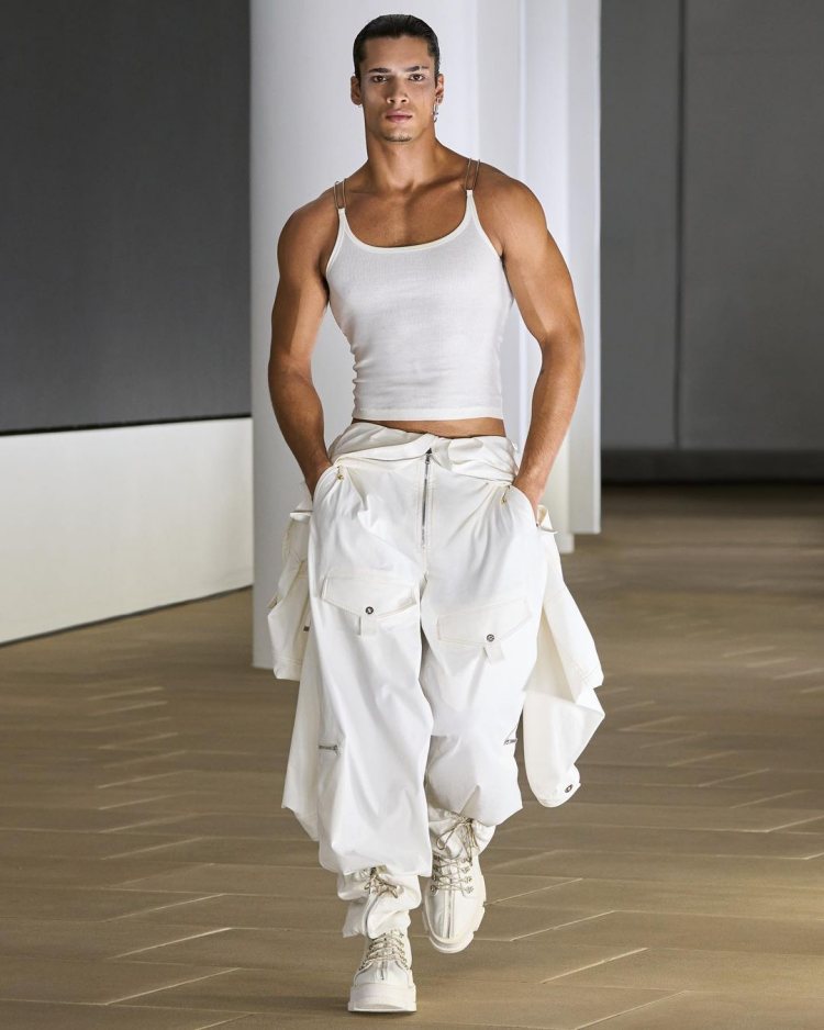 延續 Y2K 的流行風潮,當年流行的運動風格亦隱藏在 Dion Lee 的設計中,過往與街頭緊扣的運動元素,在他的巧手下可以是與蕾絲混搭拼接的洋裝,也可以是透過解構重組的時髦套裝,在都會感又充滿個性的剪裁下,Dion Lee 將運動風格玩出新花樣。