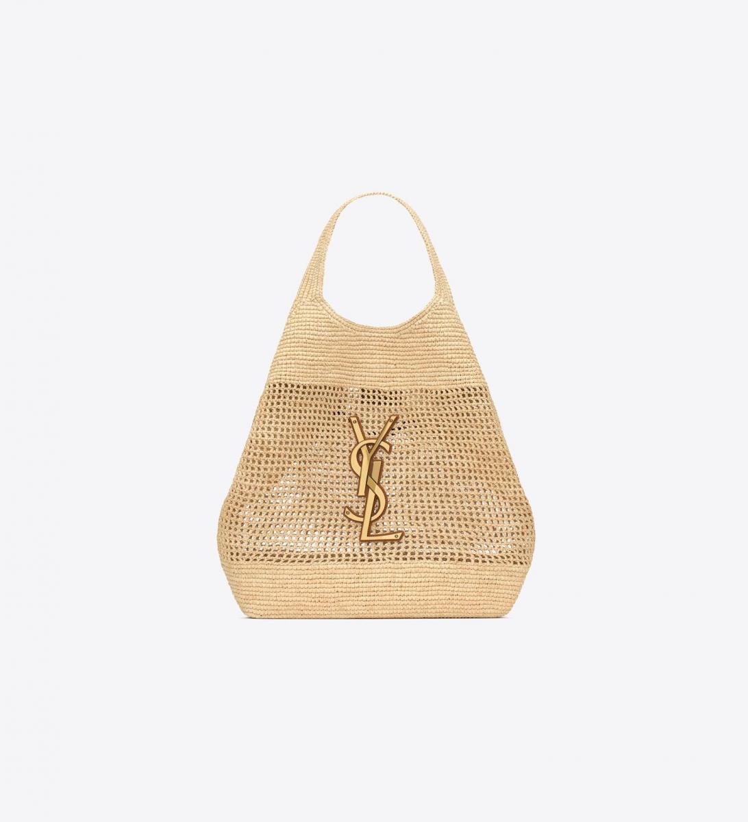 選中Icare托特包跟上今年春夏的大包風潮,印象中神秘優雅的黑色衍縫皮革,如今換上拉菲草鉤編、超大號金色YSL標誌詮釋出復古風範,就算場景切換到休閒度假海灘,聖羅蘭女人的致命性感也依舊最難抗拒!(價格:NT$165,000)