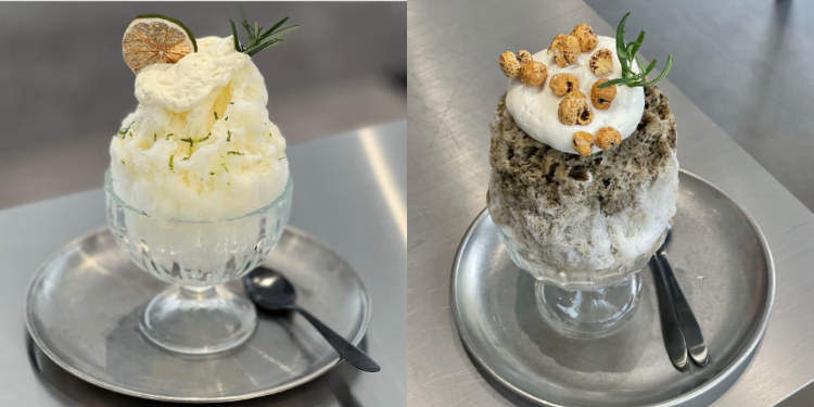 但是說到 Flow Coffee 最特別的,莫過於還點得到日式刨冰啦!店家特別引進鵝絨刨冰機,打出的冰的口感介於台式傳統刨冰與雪花冰之間,吃起來的口感真的非常細緻,目前共有提供手炒焦糖紅豆煉乳冰、鹿耳島焙茶紅豆冰、酸甜青檸冰、苦甜可可莓果冰,每一款都加入不只一種口味,最上面還會鋪上鹹奶蓋,所以吃起來層次豐富,加上一碗的大小份量很剛好,真的一個人就能輕易乾杯,John 編絕對會為了吃他們的刨冰回訪!