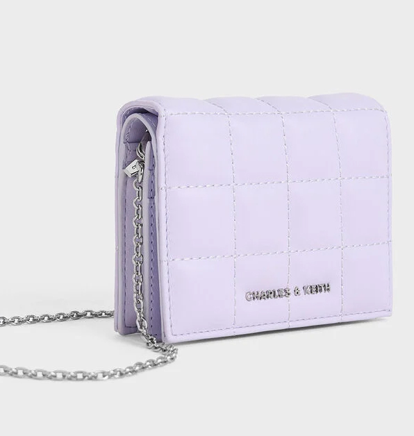 「小CK × 浪浪」廣告視覺新品推薦7:紫丁香色方塊絎縫短夾,NT$ 1,390。
