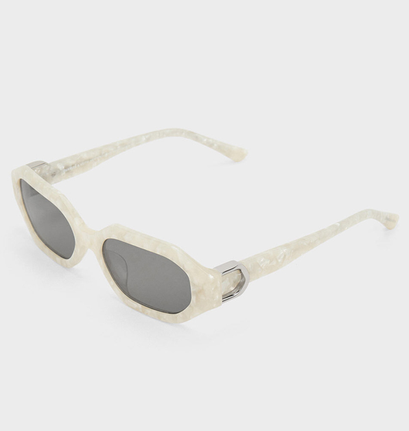 「小CK × 浪浪」廣告視覺新品推薦6:「Gabine」白色珠母貝膠框墨鏡,NT$ 2,090。
