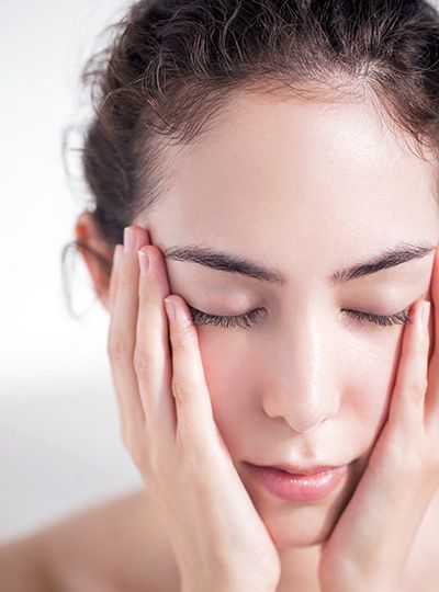 2.先卸除眼周及嘴角等重點部位彩妝,將卸妝棉折成適當大小後輕敷於眼部肌膚。