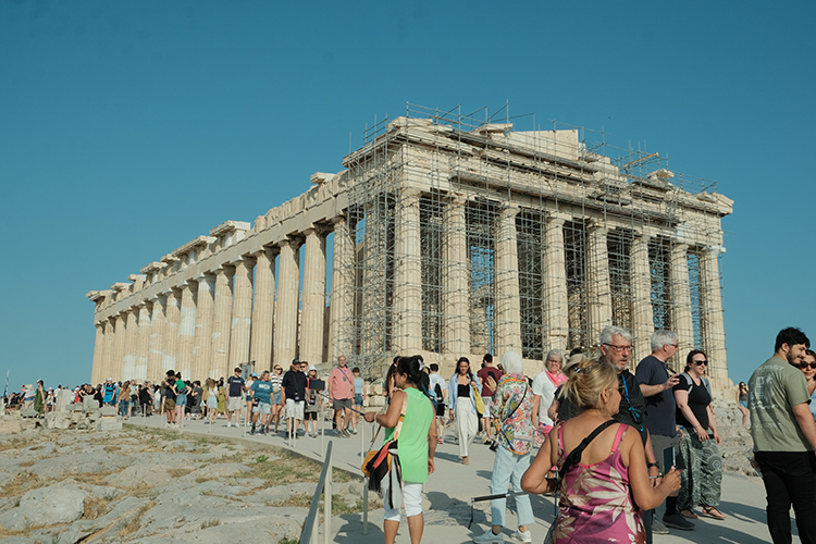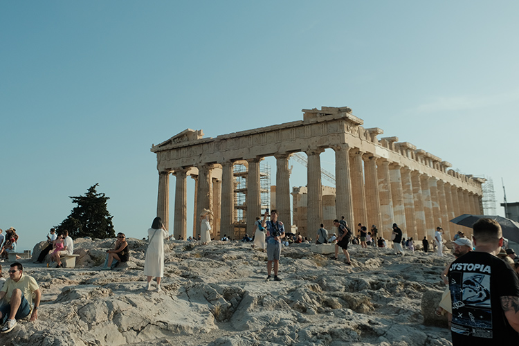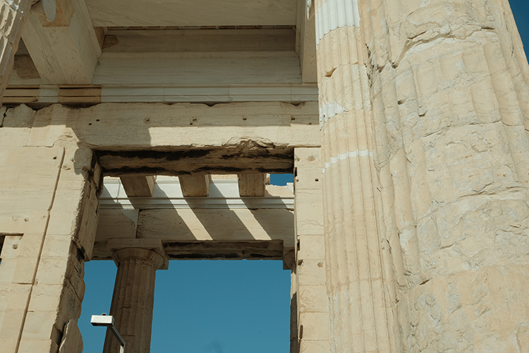 一進到內部,你會先被「帕德嫩神廟」更震撼著,因為年代久遠建築已逐漸不堪負荷,所以將常年被施工器具給包裹著,但你依舊能感受到氣勢磅礴。帕德嫩神廟至今依舊是非常經典的黃金比例建築代表,建築體以46根多立克柱環繞,用來奉祀雅典娜女神,過去殿內擁有一座巨大的雅典娜雕像,據傳使用象牙與黃金打造,但現今已不翼而飛。
