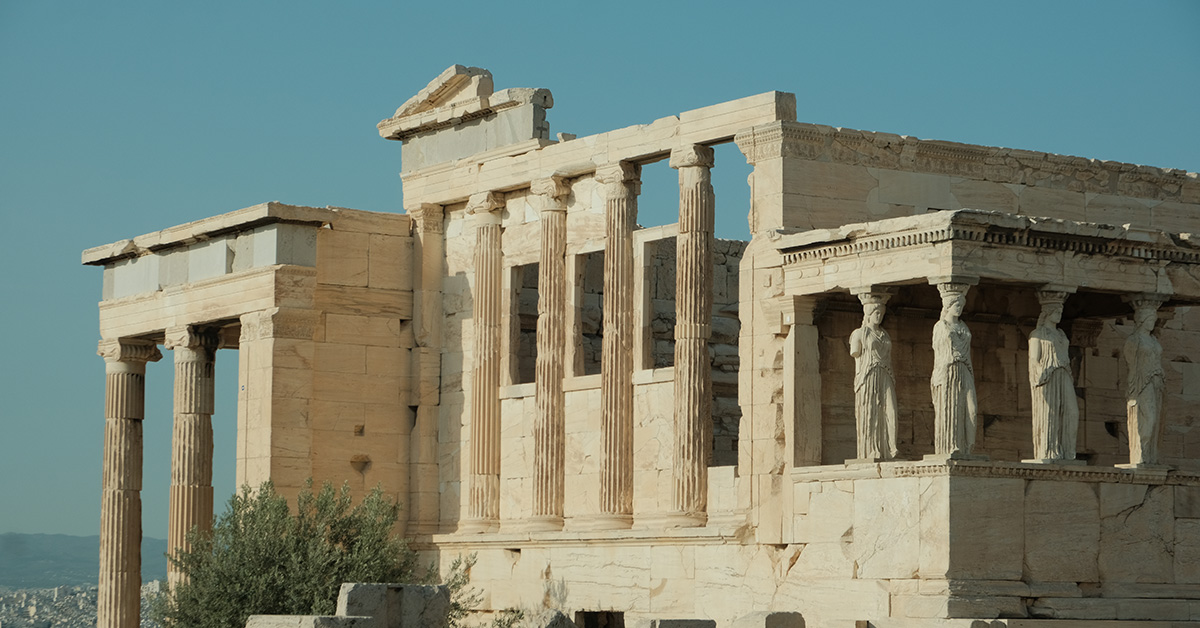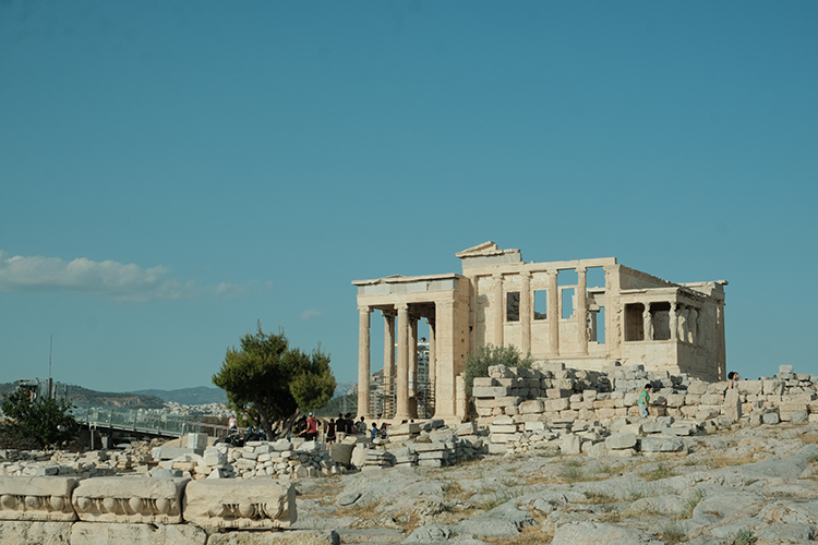 另一處也是Naomi編最喜歡的一部分「伊瑞克提翁神殿」以及「少女門廊(女像柱)」,當你在欣賞它的同時,還得說其實這是複製品,原本的少女門廊真跡也被翹走目前在大英博物館內。為何是以女性作為柱子有很多說法,根據維特魯威於西元前的作品《建築十書》提到,「伊瑞克提翁神殿」的少女門廊與奴隸制有關。而也有另一個說法是,頂戴籃子造型的女像柱被稱之為負籃者」,象徵盛裝雅典娜與阿耳忒彌斯盛宴上聖物的貞女,因此神殿門廊以此作為形象。