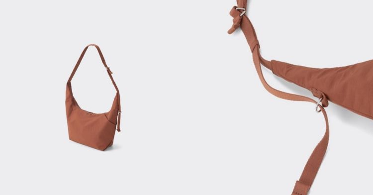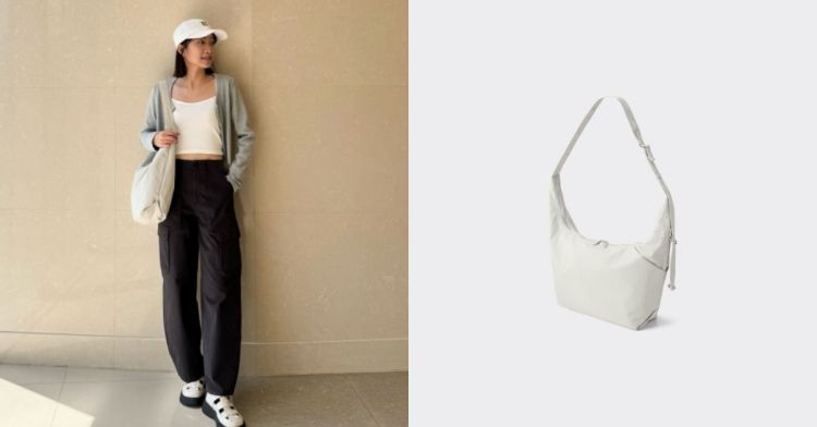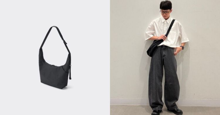 不同於先前推出的大型「尼龍弧形肩包」,GU 這款全新「柔軟尼龍斜背包」重新調整包款的尺寸,長:49 公分、寬:26 公分、厚:13 公分、背帶長:109 公分。比市面上的「半月包」再大一些,不僅輕便、容量也很夠用,可以裝得下一天出門所需的日用品,包型不會太大,看上去不會太沉重,亦能修飾整體視覺比例。