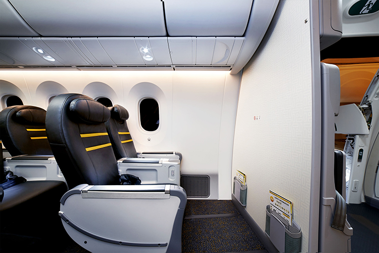 跳脫廉航(低成本航空)機艙狹小、位子侷促的印象,以「酷航」主打的波音787為例可分為18吋和31吋座椅,標準座位間距為79 公分 ,寬度為46公分,是低成本航空之中座位空間較為寬敞。就算再不滿意,還有推出「伸展座位」提供比標準座位多50%的腿部空間。此外,ScootPlus豪華經濟艙,配備全真皮座椅,96公分*56公分的座位,還搭配上20公分後傾範圍,座椅同時搭配充電插座,舒適程度讓旅客很有感!