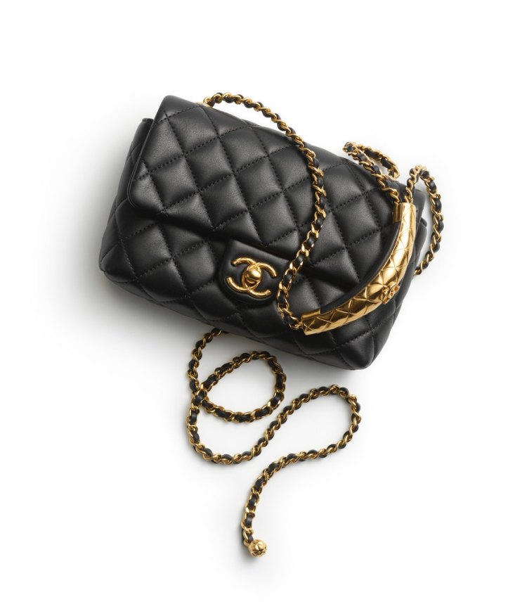 Chanel2024秋冬前導包款推薦09:黑色皮革菱格紋手拿包