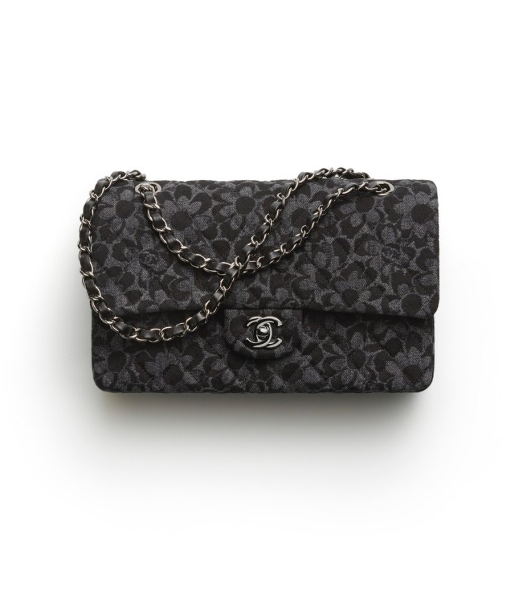 Chanel2024秋冬前導包款推薦02:灰黑色花卉圖騰菱格紋口蓋包