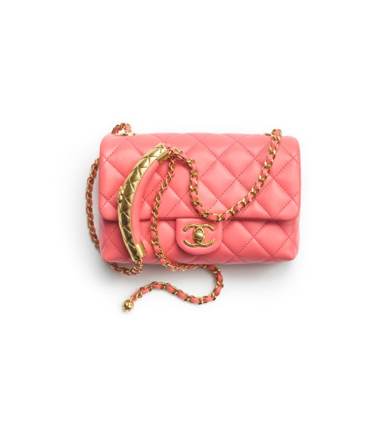 Chanel2024秋冬前導包款推薦04:粉色皮穿鍊菱格紋肩背包