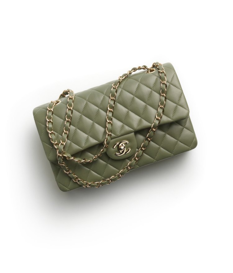 Chanel2024秋冬前導包款推薦10:綠色皮革菱格紋口蓋包