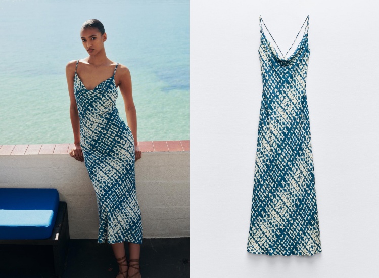 2024 Zara夏日印花長洋裝推薦08:緞面紮染長洋裝