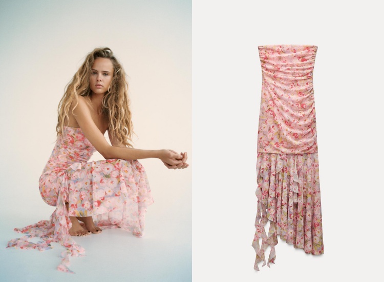 2024 Zara夏日印花長洋裝推薦04:網紗平口長洋裝
