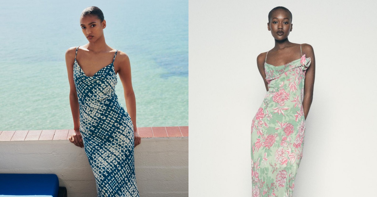 2024 Zara夏日印花長洋裝推薦02:緞面露背長洋裝