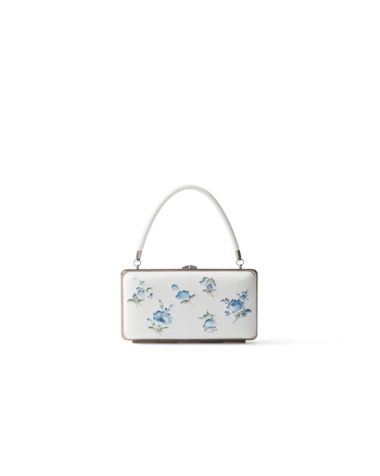 就算營收持續飆升,Prada依舊沒打算放過自己,依舊將設計持續推向藝術品等級的境界,本季包款中,再度發揮雙人設計師的藝術天賦,以藍色花朵印花打造晚宴包,顯現女人的優雅氣息!(價格店洽)