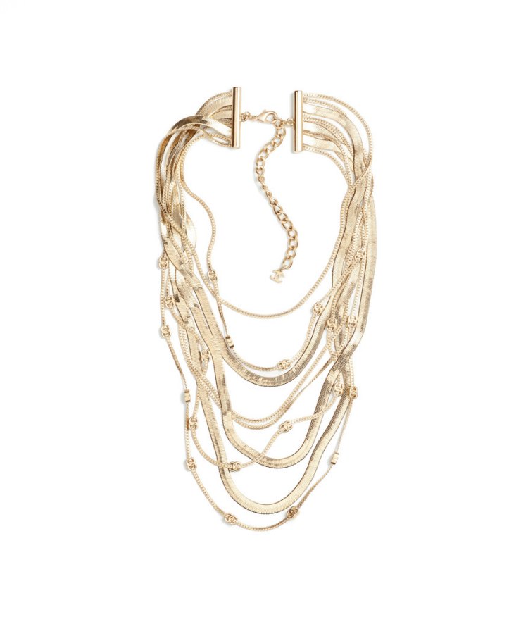 怎麼讓素 Tee + 牛仔褲也能很有型?那這條多層次的項鍊絕對是解答!Chanel 以粗細不同的鏈條交互組合,再加上許多小小的雙 C logo 錯落其中,讓其項鍊簡簡單單就擁有搶眼的造型感。(商品售價:NTD103,500)