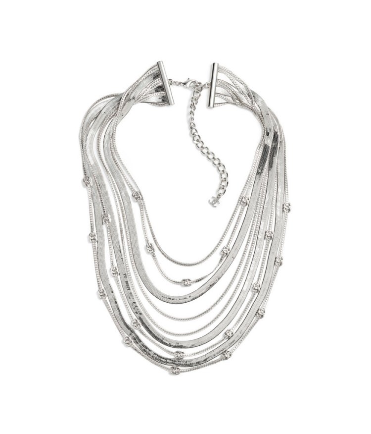 Chanel Logo首飾推薦05:銀色雙C Logo層次項鍊