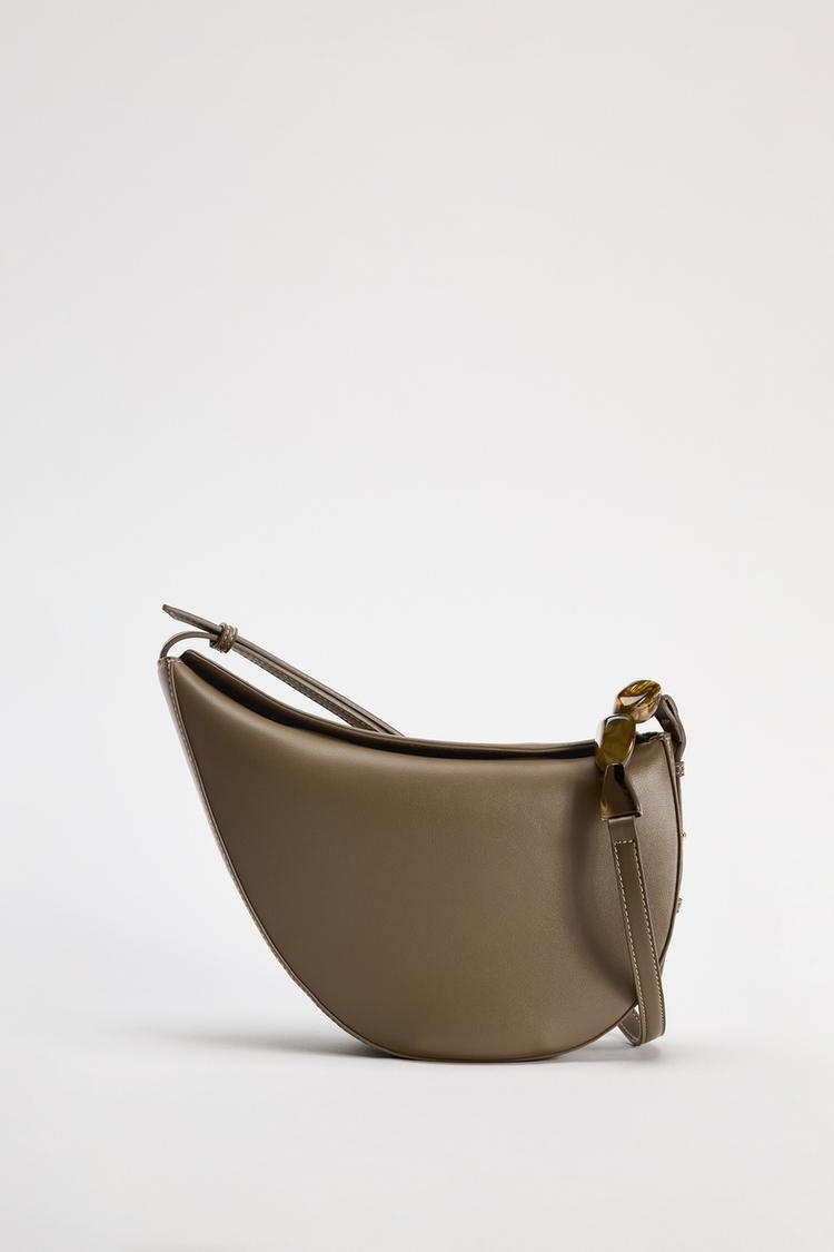 Zara近期推出一款不對稱設計的斜挎背包,有點酷似馬鞍的造型,運用帶有灰度的亞麻棕色,是個簡潔俐落,卻很有設計感的款式!(價格:NT$1,490)