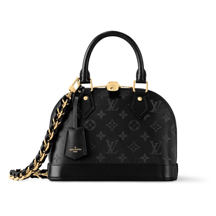 Louis Vuitton的經典包款「Alma BB」,在本季秋冬換上了全黑的外衣,搭配上鐵灰色的 monogram,讓整體包款個性感十足!加上皮革與金屬結合的背帶,絕對能成為穿搭焦點。(價格店洽)