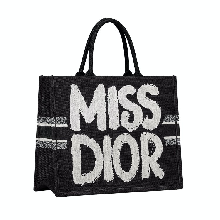 同樣以 Booktote 這款包為基底,這次設計師用帶有筆觸的形式呈現 Miss Dior 字樣,讓包款整體帶有龐克、叛逆的氣息,酷女孩也會被收服!(商品售價:NTD 110,000)
