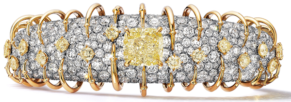 「燦爛之輝(Apollo)」主題,18K黃金鑲嵌濃彩黃鑽及鑽石手環。