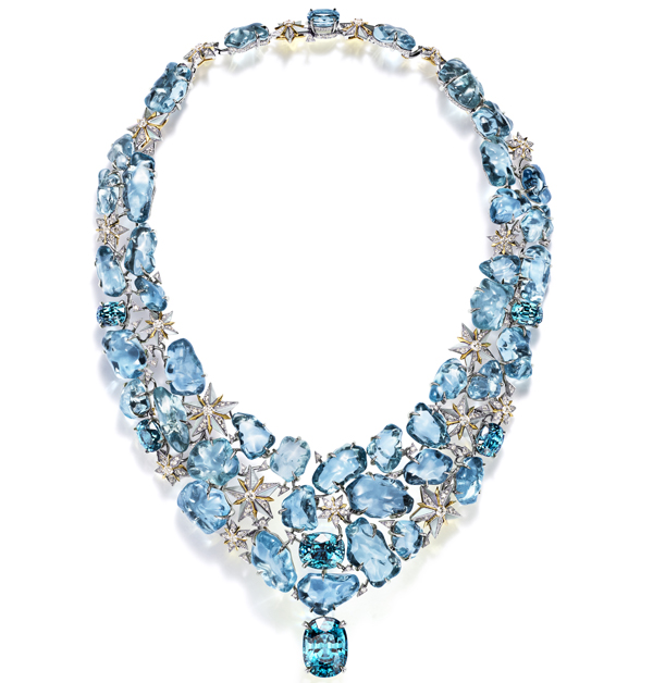 「星夜如夢(Iconic Star)」主題,鉑金鑲嵌藍色風信子石及海水藍寶鑽石項鍊。
