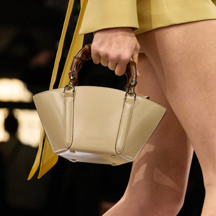 當年因戰後物資短缺,讓「竹節」意外成為 Gucci 包袋上很標誌性的設計元素,在 2024 秋冬系列中,品牌亦推出一款全新的竹節包「Bamboo Basket」,其包身以提籃的形式呈現,搭配上硬挺的皮革包身,撐起其俐落的線條,搭配上竹製的手提把設計,復古與摩登兼具的外型,讓人過目難忘。