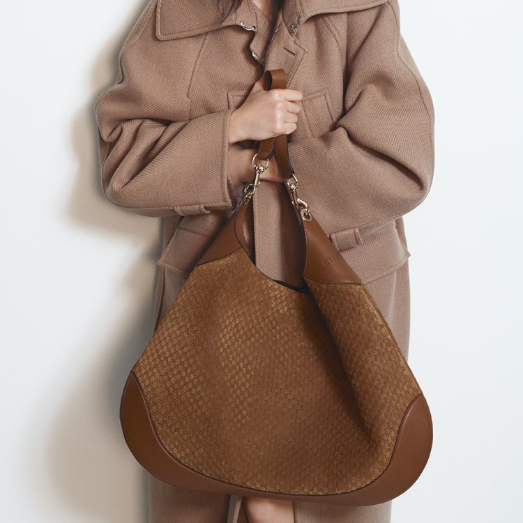 這款「B Bag」相比於秀場上的超大尺寸,整體更為日常的中型為設計,並透過麂皮壓印的形式呈現 GG logo,將 Gucci 包袋製作工藝藏於其中。(商品售價:NTD126,000)