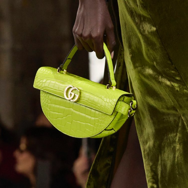 沉穩又不失活潑感的芥末黃包款一直擁有一票擁護者,Gucci 這次的「Half Moon」包款,換上更搶眼的配色,讓人目光很難移開。(商品售價:NTD143,600
