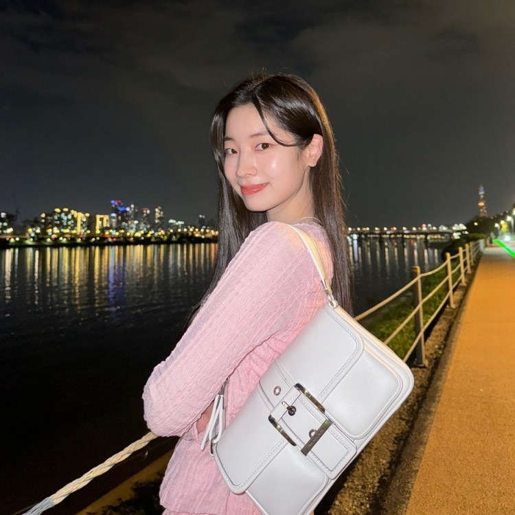 對於Colby肩背包特別情有獨鍾的多賢,就連私下出遊也不忘帶上它四處趴趴走,近期她在IG上貼出一張河岸夜景照,就以一身粉色休閒套裝搭配全白皮革Colby肩背包,營造甜美卻不甜膩的少女感!(售價:NT$18,800)