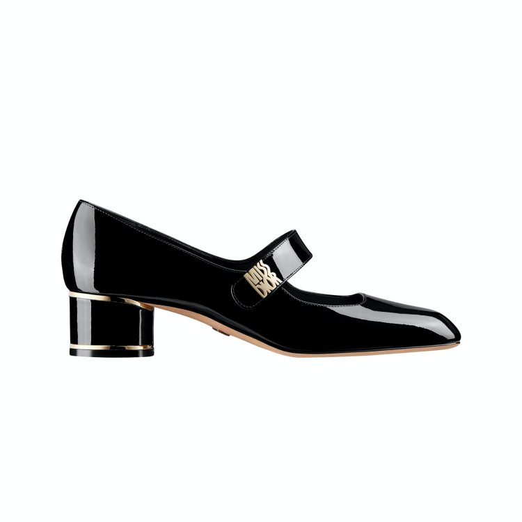 Dior2024秋冬鞋款推薦08:Miss Dior黑色漆皮金屬鞋扣低跟鞋