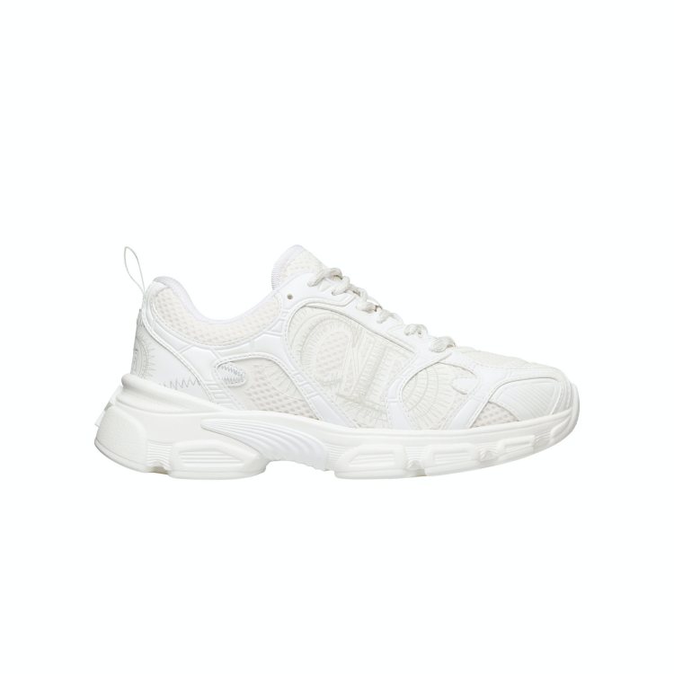 白色球鞋已經是所有女孩鞋櫃裡的必備款!這雙以網眼面料與皮革拼接的款式,並在細節處點綴上品牌縮寫字樣,透過不同材質的堆疊,即便是一雙全白的鞋款,但仍充滿層次。(商品售價:NTD36,000)