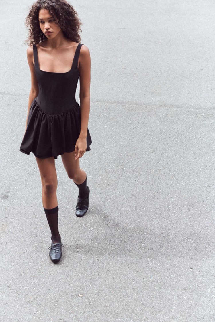 Zara 2024秋季洋裝推薦一:縮褶馬甲式洋裝