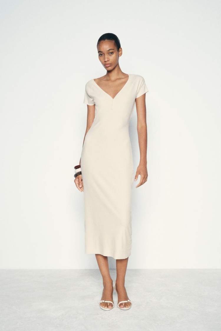 Zara 2024秋季洋裝推薦三:羅紋中長版洋裝